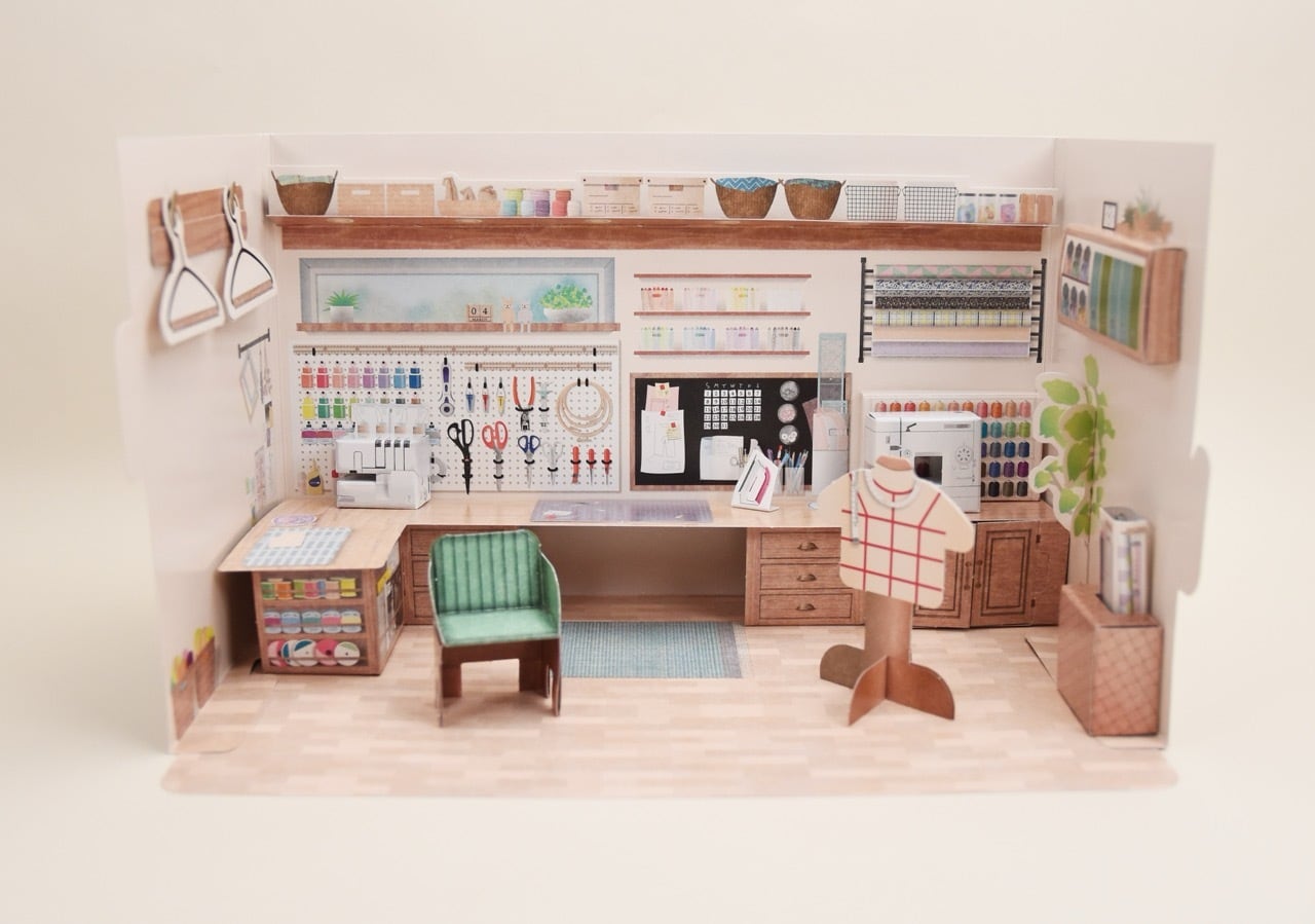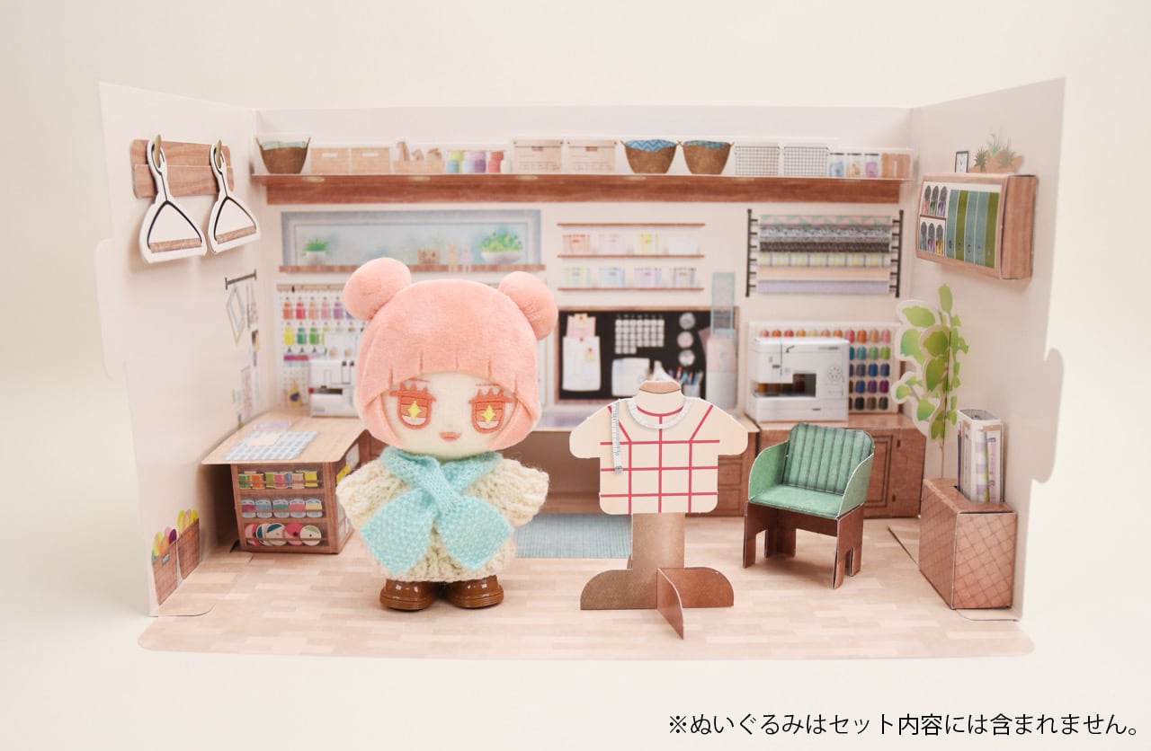 ミシン目入りの台紙をカットし、両面テープなどで貼り付ければ、立体感のある撮影スタジオが完成します。