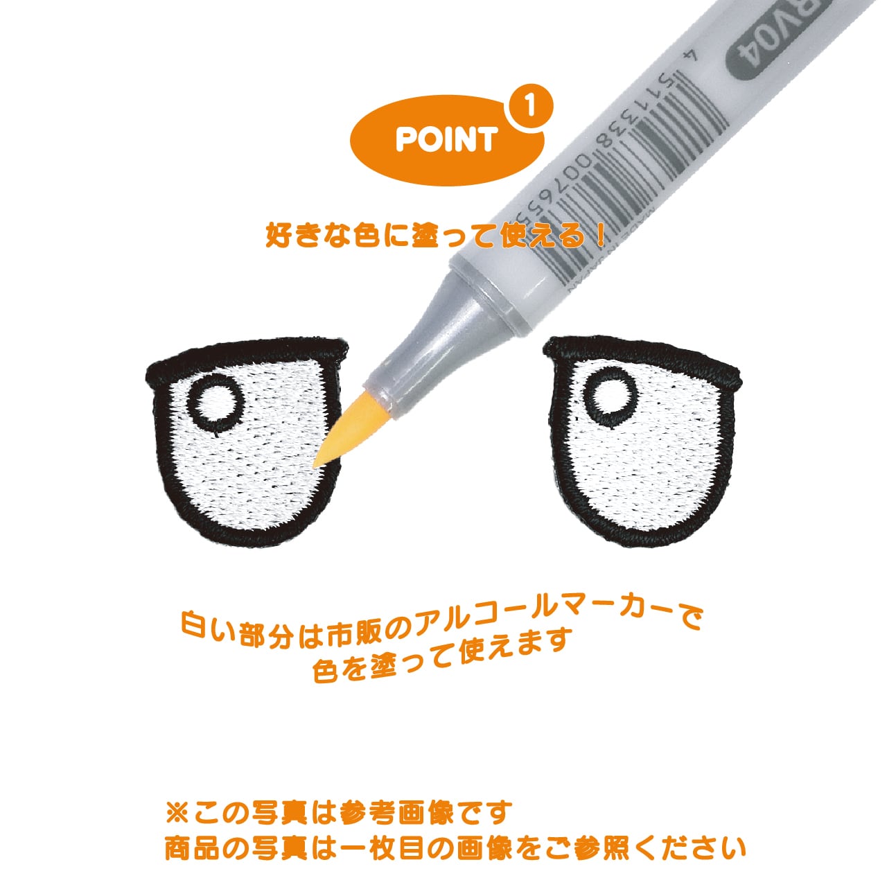 ぬいのおかお刺繍ワッペン B-01-Sサイズ 目・左右セット